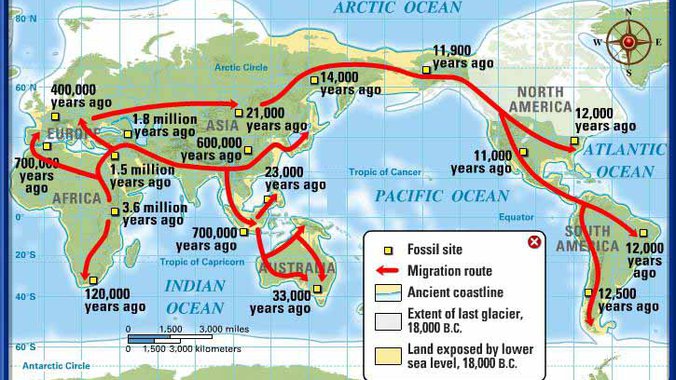 Oči Azijata evoluirale su tako zbog migracije. Oni koji su išli na Istok naišli su na odsjaj, hladnoću, vetar i prašinu u stepama centralne Azije. Morali su da razviju spljoštene crte lica jer bi oni sa izbočenim nosom dobili ozebline, zatim gangrenu, pa bi umrli. Treba napomenuti da su išli na istoku dakle u susret izlazeđem sunce.