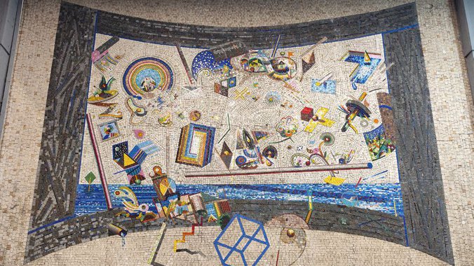 Ovaj mozaik nalazi se ovde od 1989. godine i njegov autor je čuveni umetnik Branko Miljuš.