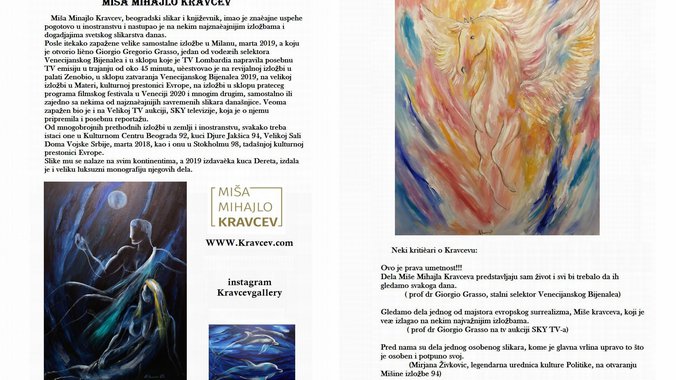 Naime, tada je bilo gotovo dogovoreno, da u sklopu manifestacije – Novi Sad, Evropska prestonica kulture, Đorđo Grigorio Graso, jedan od najuticajnijih selektora Venecijanskog Bijenalea i uopšte najznačajnijih svetskih kritičara, organizuje i sam otvori izložbu, po njemu vodećih slikara današnjice, iz celog sveta, sa idejom da ta manifestacija postane tradicionalna i reprizirana svake 2 godine. Međutim, epidemija korona virusa tada je učinila svoje, a Novi Sad kao izbor lokacije, došao je tad na sugestiju samog Miše Mihajla Kravceva.