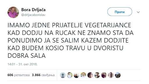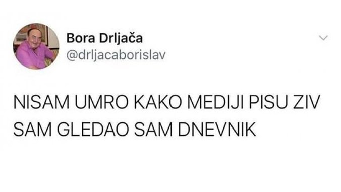 Bora Drljača je pre samo mesec dana demantovao pisanja pojedinih medija o njegovoj smrti. Bora je u svom maniru šaljivo odgovorio, a taj tvit je izazvao veliko oduševljenje.