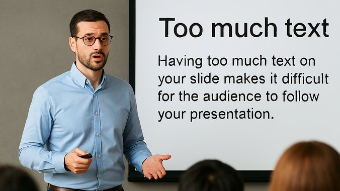 Kada se u prezentaciji pojavi previše teksta, mozak publike mora da bira ili da čita, ili da prati izlaganje. Rezultat je da poruka gubi snagu, a pažnja se rasipa. Zbog toga stručnjaci savetuju da se PowerPoint i slični alati koriste kao vizuelna podrška, a ne kao „čitanka“.