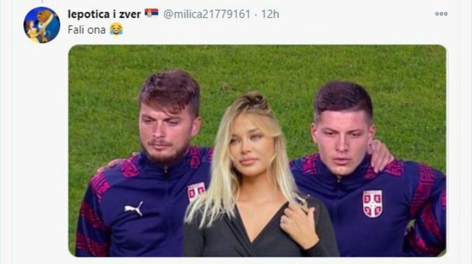 Naime, Adem Ljajić i Luka Jović su stali jedan pored drugog. Ono što ih povezuje, van fudbala, jeste i to da je trenutna devojka Jovića zapravo bivša devojka Adema Ljajića. Tviter je poznat po tome da je i ranije povezivao Sofiju Milošević sa našim fudbalerima, te su jednom i proglasili "selektorom".