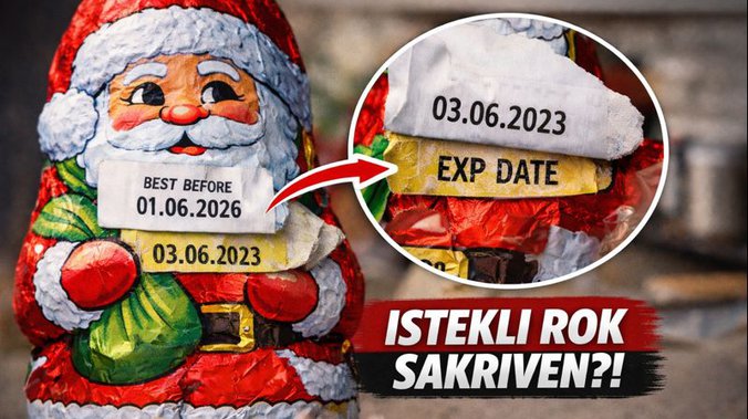 Reč je o novogodišnjem paketiću od 75 grama, u kojem se nalazila praznična figura od kakao preliva. Na spoljašnjoj nalepnici naveden je datum upotrebljivosti do 1. juna 2026. godine. Međutim, radoznali potrošači odlučili su da uklone nalepnicu i tada su, kako navode, ostali zatečeni.