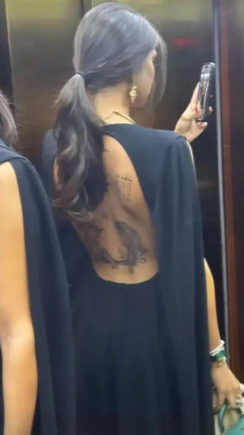 Međutim, najviše pogleda privukla su njena leđa, prekrivena upečatljivim tetovažama, za koje se ne zna kakvo značenje poseduju.