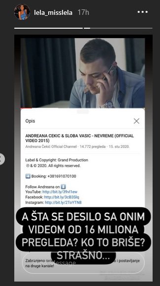 - A šta se desilo sa onim videom od 16 miliona pregleda? Ko to briše? Strašno... - poručila je Jelena.