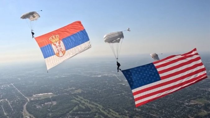 Ovo nije običan skok, već je planirani nastup sa zastavama od čak 108 kvadrata, gde su srpska i američka zastava zajedno letele nebom.