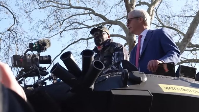 Najdžel Faraž i Čisora pojavili su se zajedno na konferenciji za medije u Londonu, ali ne na uobičajen način. Njih dvojica su na događaj stigli ni manje ni više nego tenkom, mašući britanskim zastavama i izazvavši lavinu reakcija okupljenih novinara i publike.