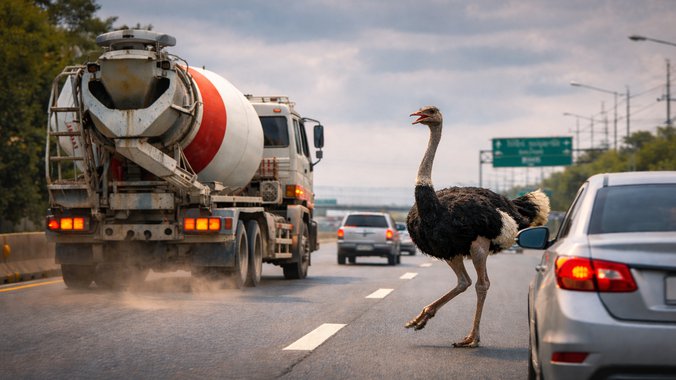 U nesvakidašnjem obrtu, ptica je krenula za kamionom sa cementom i tako završila na autoputu, gde je nastavila da trči gotovo 16 kilometara u pravcu grada Rajong.