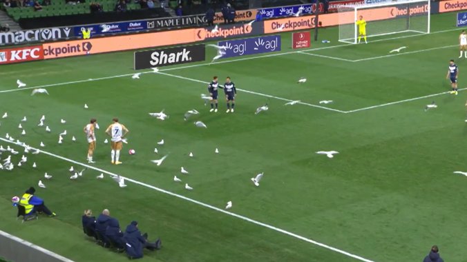 U australijskoj A‑Ligi odigrala se scena koja je u trenu obišla svet meč je nakratko „prekinula“ ogromna jata ptica koja su sletela na teren tokom sudijske nadoknade. U trenutku kada je rezultat bio izjednačen, a atmosfera na tribinama na vrhuncu, beli galebovi prekrili su travnjak, stvarajući gotovo nadrealan prizor koji je zbunio igrače i nasmejao publiku.