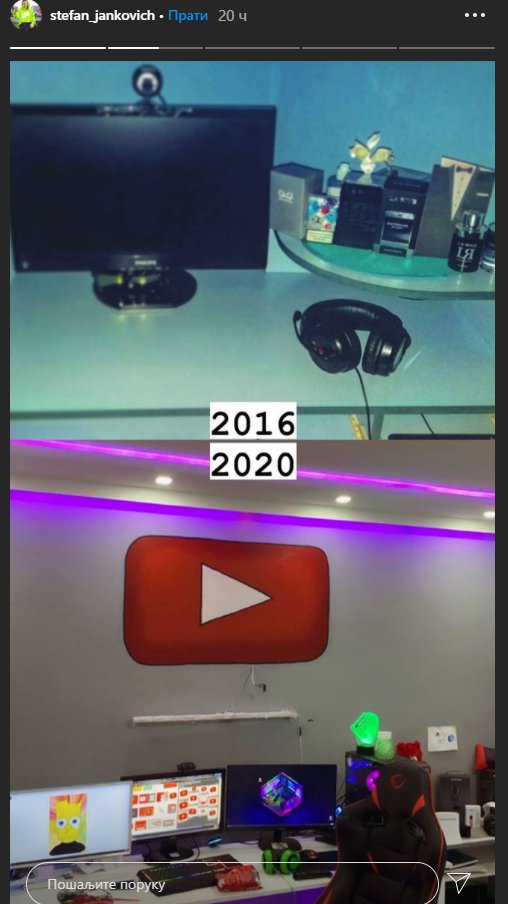Sa svojim pratiocima podelio je sliku na kojoj vidimo njegov prostor za rad iz 2016. i sada. Sve što je bilo potrebno za snimanje i editovanje prvih videa jeste jedan kompjuter, veb kamera i slušalice. Poznato je da influenseri i jutjuberi zarađuju ogromne količine novca i da veliku svotu izdvajaju upravo na najmoderniju opremu i tehnologiju. Po tome se ne razlikuje ni Janko, koji je u par navrata dorađivao svoju sobu u kojoj snima i ulagao u rekvizite za svaki video. Ubrzo je uvideo da ogroman trud koji ulaže se i te kako isplaćuje, jer je posle svakog objavljenog videa dobijao na hiljade novih pretplatnika.