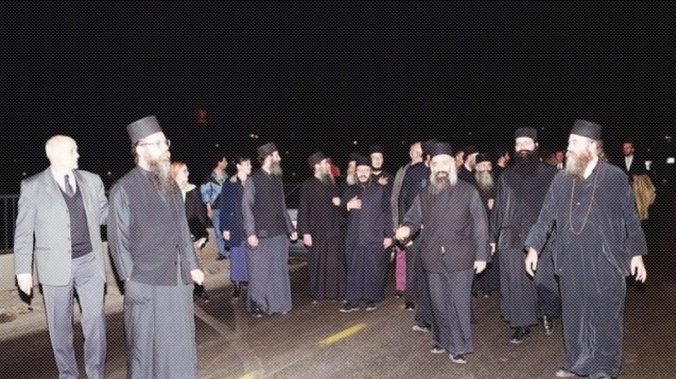 Tadašnji Prota Svete Gore, arhimandrit Stefan Hilandarac, sa monasima se pridružo narodu tokom protestnih šetnji na Brankov most.