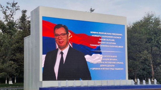 Na aerodromu, ali i širom grada, postavljeni su bilbordi sa likom predsednika Vučića i porukom dobrodošlice, na uzbekistanskom i srpskom jeziku, na kojima piše: