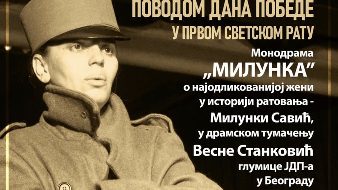 U nedelju, 16. novembra 2025. godine, sa početkom u 17.30 časova (ulaz od 17.00), u prostoru JÄGERHEIM (Ing.-Etzel-Str. 63, 6020 Innsbruck), biće održana pozorišna monodrama Milunka, posvećena životu i delu Milunke Savić, najodlikovanije žene u istoriji ratovanja. Ulogu Milunke tumači glumica Jugoslovenskog dramskog pozorišta iz Beograda, Vesna Stanković.
