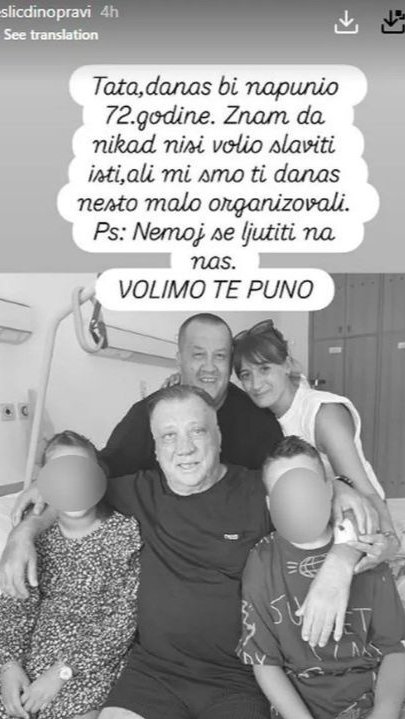 Tata, danas bi napunio 72. godine. Znam da nikad nisi volio slaviti isti, ali mi smo ti danas malo nešto organizovali. PS: Nemoj se ljutiti na nas. Volimo te puno