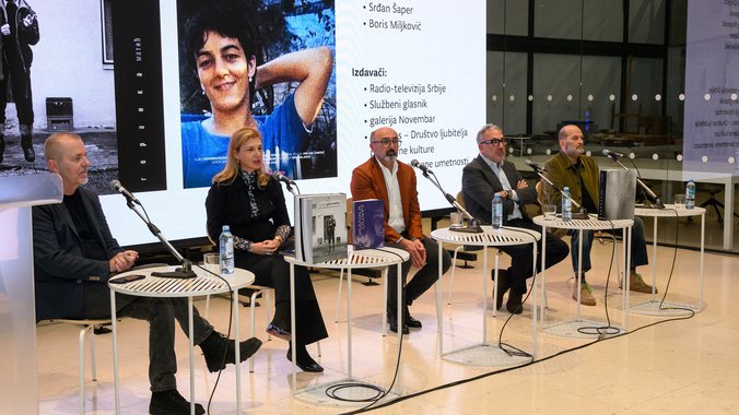 Na promociji monografije pozdravnim govorom se obratila Marijana Kolarić, direktorka MSUB, a o monografiji su govorili Nebojša Grujičić (RTS), Una Popović (MSU), Predrag Popović (Popbooks), Srđan Šaper (Galerija Novembar) i Boris Miljković (autor filma). 🧐