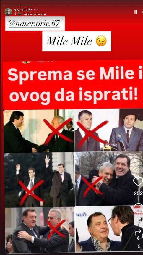 Orić je nakon toga podelio sliku Milorada Dodika sa predsednicima Srbije od Slobodana Miloševića do Aleksandra Vučića uz tekst: