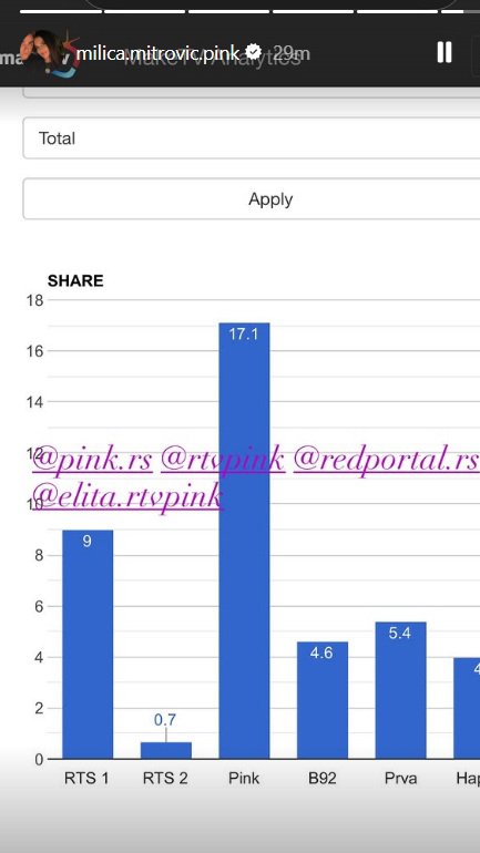 Rezultatime gledanosti objavila je direktorka programa TV Pink Milica Mitrović koja je na svom Instagram storiju podelila fenomenalne brojke. 🔥
