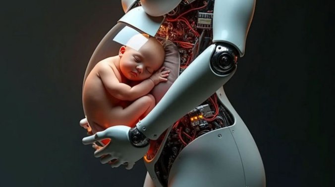 Jedna kineska tehnološka kompanija razvija humanoidnog robota koji može da zatrudni i „rodi” dete. Robot ima sintetičku matericu, veštačku plodovu vodu i plastičnu pupčanu vrpcu. Cilj je da se u njemu od embriona do porođaja razvije beba i to bez ljudskog tela.