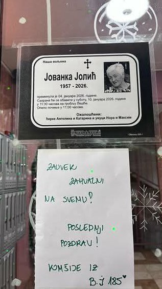 Na društvenim mrežama pojavila se fotografija dirljive poruke komšija nedavno preminule Jovanke Jolić, najpoznatijeg konspirologa sa ovih prostora.