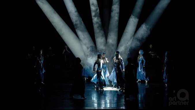 Kompleksna i zahtevna koreografija spaja savršeno sinhronizovane pokrete trupe sa zadivljujućim tehničkim umećem pojedinačnih izvođača. Energični muški plesači vešto lete kroz vazduh sudarajući se mačevima i bodežima, takmičeći se u dinamici pokreta i visini skoka kako bi osvojili naklonost elegantnih plesačica koje se kreću tako graciozno da deluje kao da lebdena sceni. 🤺