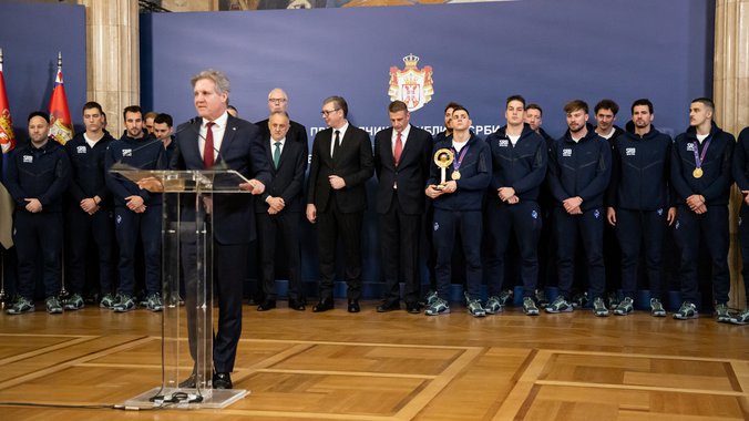 Predsednik je na samom početku prijema zahvalio igračima i celom stručnom timu naše reprezentacija na još jednom neverovatnom uspehu.