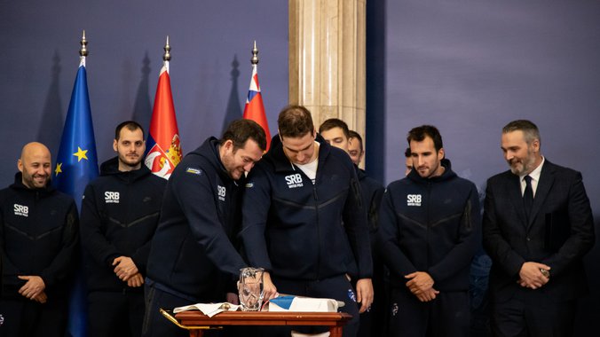 - Iznenadio sam se kako su odigrali ovo takmičenje. Nisam očekivao zlatnu medalju, da ne bude da kažem da sam bio siguran, ali sam toliko ponosan na njihov trud i rad. Želi da čestitam svim igračima i celom stručnom štabu. I ono na šta sam ponosan, sem dvojice momaka, koji igraju u Herceg Novom i Kotoru, Lazić i Vico, i Mandić i Drašović koji igraju u Ferencvarošu i Marseju, svi ostali igrači su iz Kragujevca iz Beograda Hvala vam za svu radost i za sve što ste nam doneli, za ljubav prema sportu, ali pre svega za ljubav prema Srbiji kuju ste pokazali na svakom mestu - rekao je Vučić i dodao: