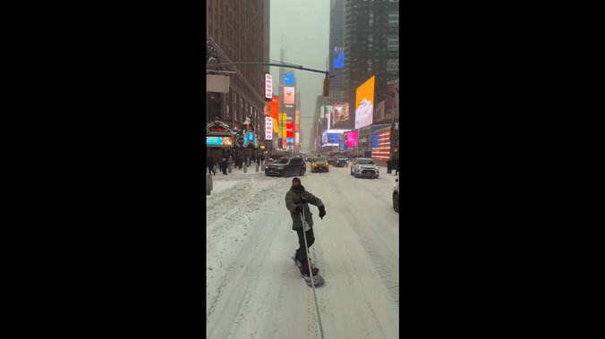 Nakon što je snažna oluja pogodila Sjedinjene Američke Države, mladić iz Njujorka iskoristio je priliku da se provoza na snoubordu ulicom Tajms Skver, a snimak njegove vožnje ubrzo je postao viralan na društvenim mrežama. 🏂