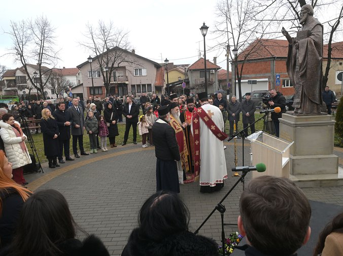 Nakon otkrivanja, arhiepiskop i mitropolit kruševački David osveštao je spomenik Svetom Savi, uz sasluženje sveštenstva Eparhije kruševačke. ☦️