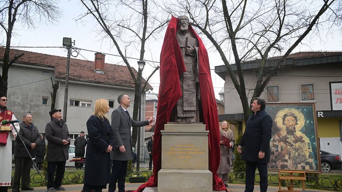 Ministar odbrane Bratislav Gašić, zajedno sa gradonačelnikom Kruševca Ivanom Manojlovićem i direktorkom Fondacije Za srpski narod i državu Ljubicom Bertović, otkrio je danas spomenik Svetom Savi na istoimenom Trgu u Kruševcu.