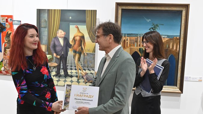 Otvaranje izložbe u Valjevu bilo je i prilika za dodelu nagrada za likovnu kritiku. Prvu nagradu osvojila je Milena Nedeljković za rad Initium mundi – case study, posvećen slici Nikole Mitrovskog istog naziva. Dodeljene su i dve druge nagrade: Emiliji Dojčinović za tekst Fantastika nije bekstvo, već ogledalo, posvećen celokupnoj izložbi Trećeg Bijenala fantastike, i Svetlani Pantić za tekst Lice i naličja, posvećen slici Rekapitulacija Jane Stojaković. 🤩