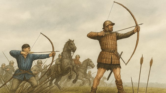 Engleska vojska, sastavljena pretežno od veštih strelaca, izvojevala je iznenađujuću i istorijsku pobedu nad daleko brojnijom francuskom konjicom u bici kod Aženkura 1415. godine. Iako brojčano slabiji, engleski strelci uspeli su da zaustave nalet oklopljenih vitezova zahvaljujući svojoj spretnosti, taktici i razornom dejstvu dugog luka, oružja koje je u to vreme predstavljalo ključnu prednost na bojnom polju.