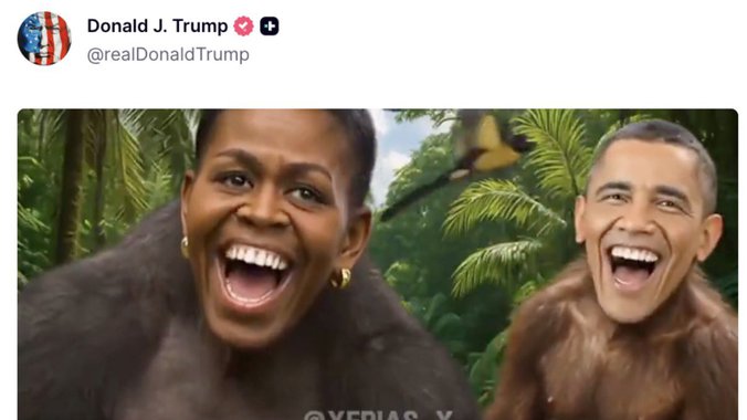 U.S. President Donald Trump posted this on Truth Social, which featured the Obamas as monkeys. pic.twitter.com/f0ovYjPnDy