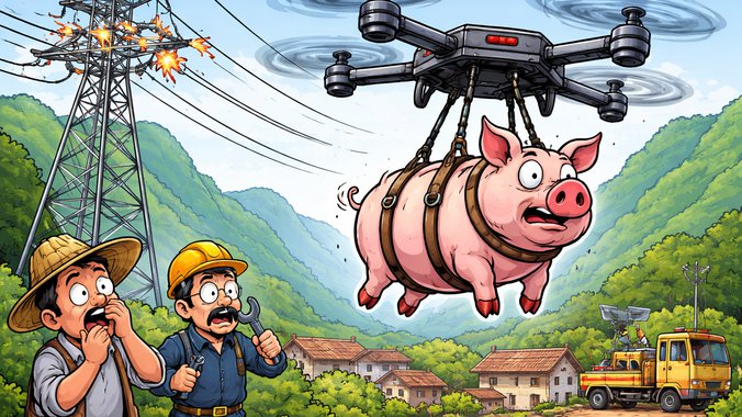 A humorous incident occurred at the end of January. A farmer decided to use a drone to transport an animal across mountainous terrain, but the drone hit power lines.