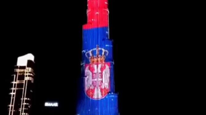 Simbol Dubaija u bojama srpske zastave na Dan državnosti