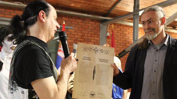 U sklopu tog predstavljanja, na otvaranju festivala okupljenima je svečano prezentovan Protokol o saradnji potpisan u Leskovcu 2025. godine, kao vid pobratimljenja između Leskovca i Soluna, i to u prisustvu generalne konzulke Srbije u Grčkoj, gospođe Jelene Vujić-Obradović. Pored toga, Leskovac je apostrofiran kao grad zaslužan za prvu izložbu rumunskog stripa ikada održanu u Grčkoj. Reč je o izložbi Drakula u rumunskom stripu, koja je prvi put postavljena na pomenutoj 27. Balkanskoj smotri mladih strip autora, i to u sklopu ranije uspostavljenog stripovskog pobratimstva između Leskovca i Brašova u Rumuniji.