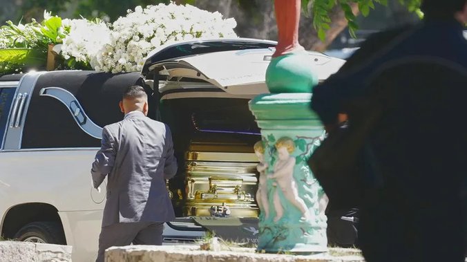 Kako se navodi pogrebnu povorku pratili su muzičari i nekoliko desetina ljudi, od kojih su mnogi nosili crne kišobrane iako je bio sunčan dan.