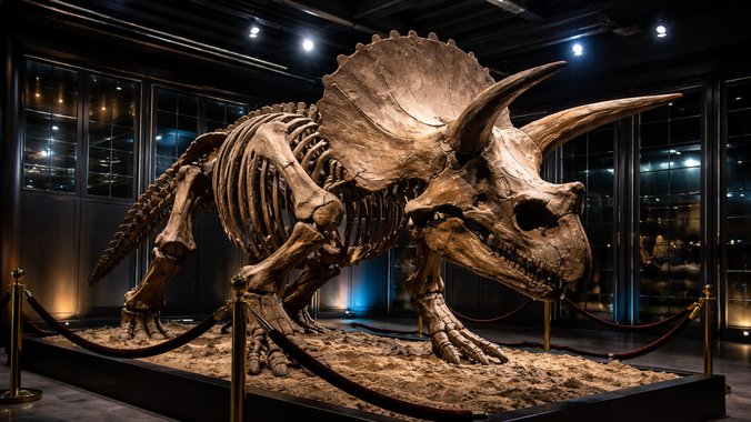 Međutim, najneobičniji predmet u ovom luksuznom skladištu nije slika niti zlato, već gotovo kompletan fosil dinosaurusa - triceratops nazvanog Trej.