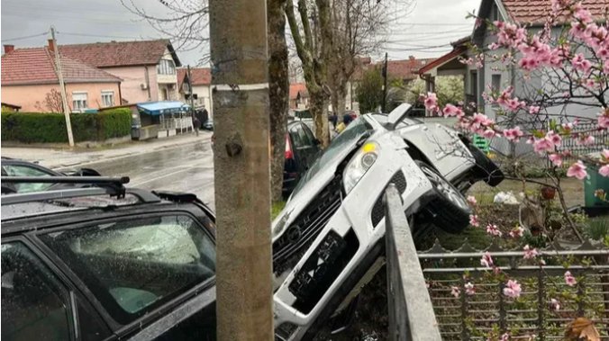 Na fotografiji sa lica mesta u Kragujevcu vidi se jedno vozilo koje je poprilično oštećeno i od siline udara nabačeno je na ogradu porodične kuće. 😭