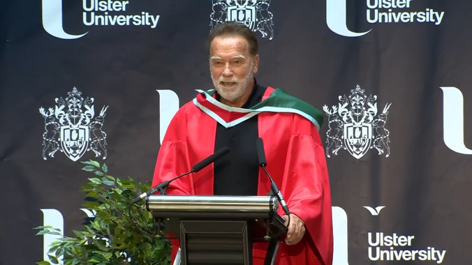 Arnold Švarcneger, holivudski glumbac i bivši guverner Kalifornije, primio je počasni doktorat na Alster univerzitetu u Belfastu.