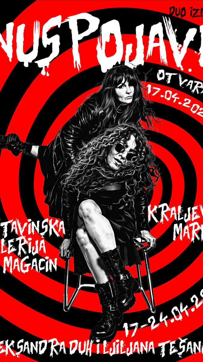 Izložba slika Aleksandre Duh i Ljiljane Tesanović, pod nazivom Nuspojave, u Ostavinskoj galeriji u Beogradu biće otvorena 17.04.2026. u 19 časova. 🖼️