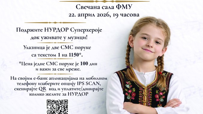 Ulaz na koncert: donacija slanjem 2 SMS poruke (tekst: 1) na broj 1150 (100 RSD po poruci).