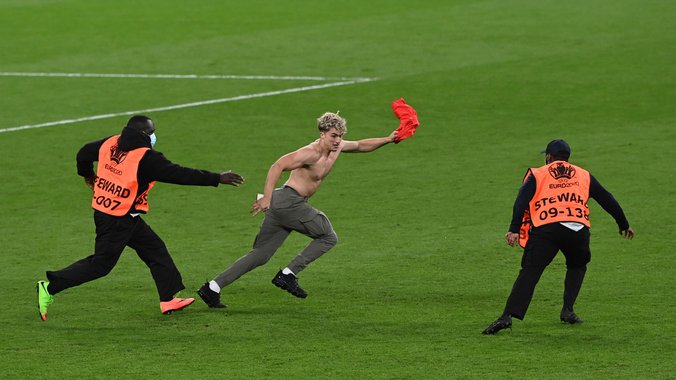 Već kad su svi pomislili da će ova utakmica proći bez upada u teren svakakvih egzibicionista, to se ipak desilo, skoro na samom kraju, u 88. minutu utakmice, tako da je igra prekinuta na kratko dok ovaj gledalac nije sklonjen sa terena.