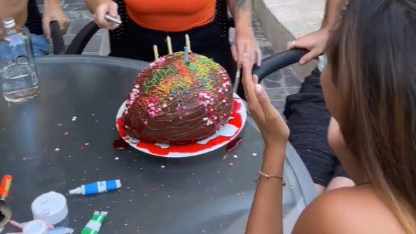 Ovaj put su prijatelji rešili da iznenade drugaricu pripremajući joj tortu od eurokrrema koji su posuli raznim perlicama i svećicama kako bi izgledala što realnije. Ono što se krije iza sloja eurokrema je balon pun vode pa je slavljenica bila veoma neprijatno iznenađena. 😂😂