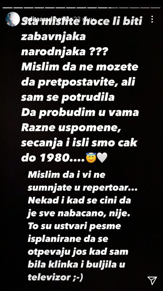 Edita već danima najavljuje svoj predstojeći YouBox koncert i odgovara fanovima na sva pitanja. Najavila je i deo reportoara, ali je, pre svega, želela da čuje želje i očekivanja publike.