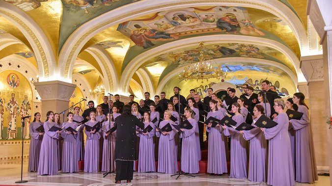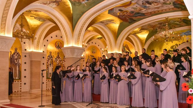 Na programu su bila dela duhovne muzike: intoniranje Polijelejnog psalma protojereja Dimitrija Arzumanova, u izvođenju ženskog ansambla. Zatim su usledila dela srpskih i ruskih kompozitora: od Stevana Mokranjca, Kornelija Stankovića, Sergeja Rahmanjinova i Čajkovskog, do nekoliko kompozicija novijeg datuma, mladih srpskih kompozitora, među kojima je i Heruvimska pesma Andreja Cincarevića.