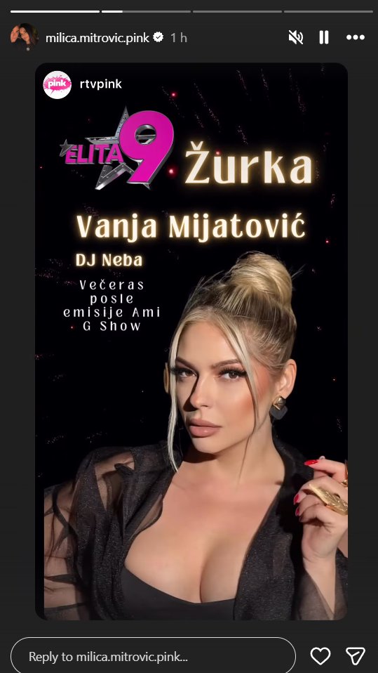 Večeras je vreme za spektakl u rijalitiju Elita 9! 🥳 Nakon emisije Amig Show, gledaoci Pink televizije imaće priliku da uživaju u velikoj žurki na imanju, a za vrhunsku atmosferu zadužena je popularna pevačica Vanja Mijatović i di-džej Nebu. 🎶